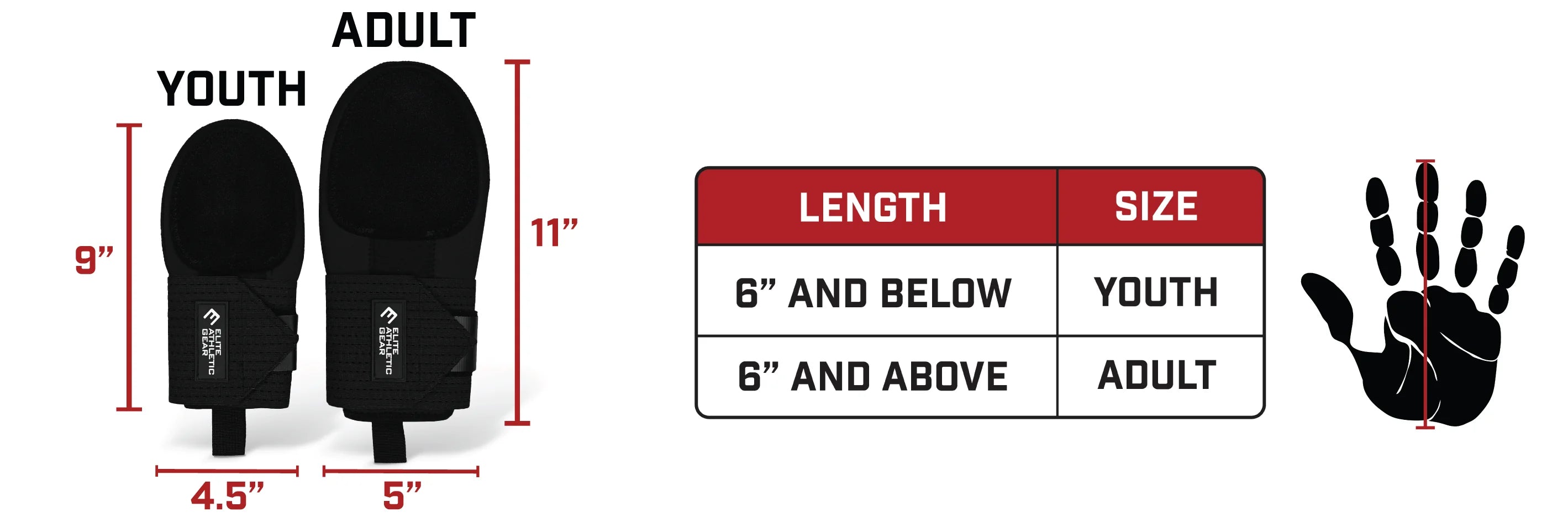 The sliding mitt can be worn on your left or right hand. Please refer to our sizing chart to determine if you're a YOUTH or ADULT size. Generally, kids under 12 will wear the YOUTH size.